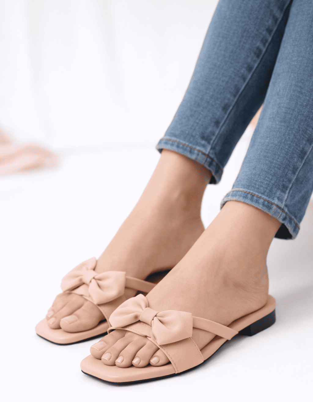 Soft blush flats with elegant bow detail, offering comfort, style, and everyday versatility.