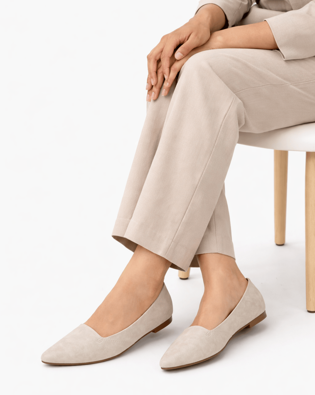 Timeless pointed-toe flats in a soft ivory beige tone — designed for all-day comfort and effortless elegance.