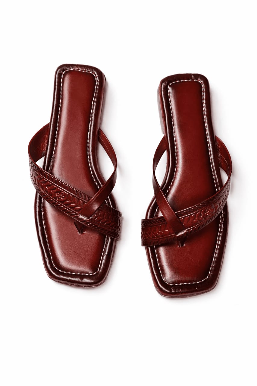 Minimal yet elegant tan flats crafted with smooth leather finish and stylish cross-strap detailing. Designed for everyday comfort with a refined ethnic touch, perfect for casual and semi-traditional wear.